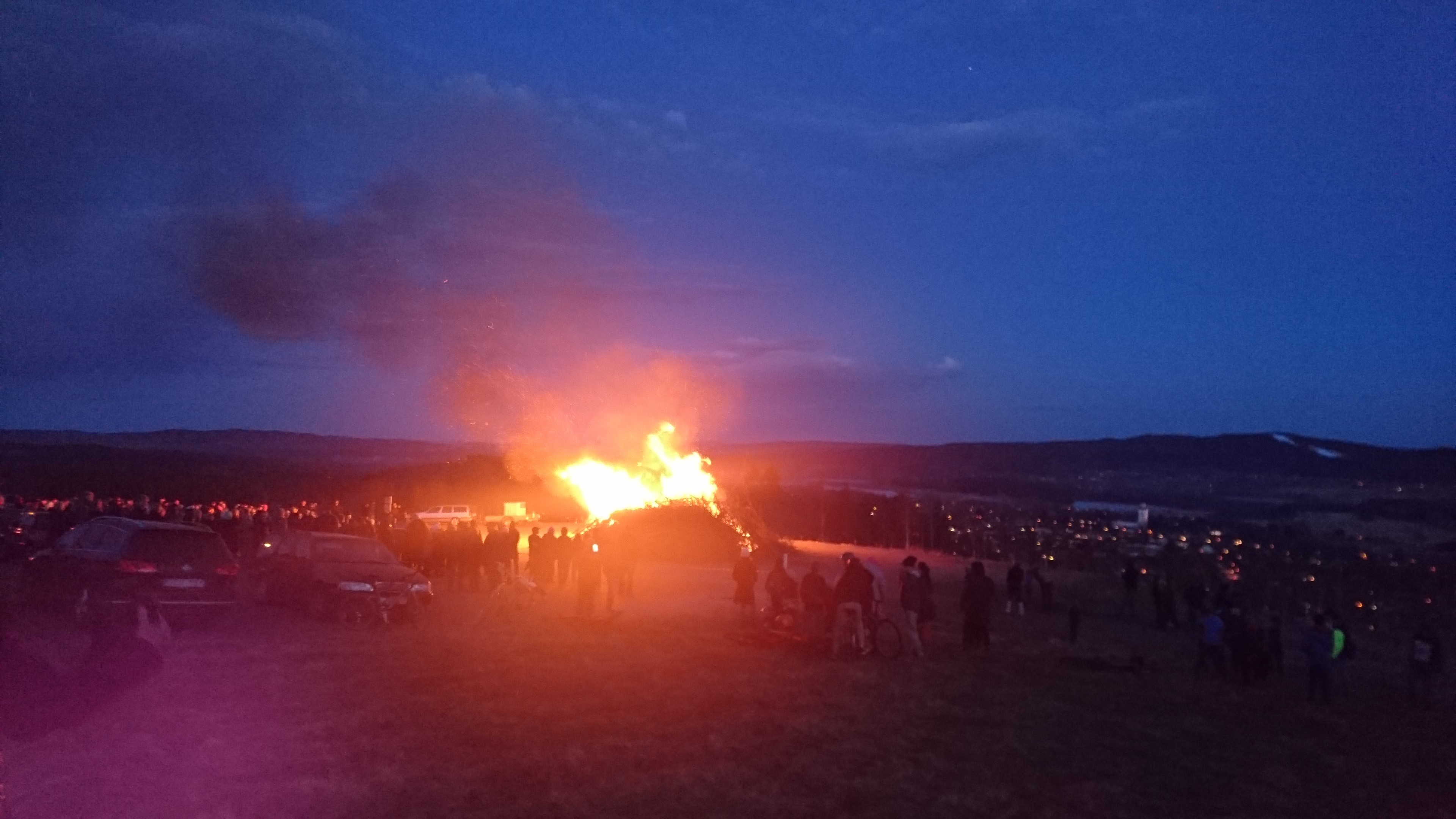 Valborgsmässa. May 1st, symbol of spring, cleaning out, and a new beginning. On Björkberget behind Siljan Airpark a huge bon fire was built, a choir was singing beautiful Swedish songs about spring, and a thought-provoking speech was held by I assume a relative maybe even the son of one rather well known Siljansnäs pastor Niels Tägt. The speaker, Niels-Olof Tägt, managed to include what to fight and what to support as humans. Good job. And then the fire was lit, the wind calmed down, and while the light of the sky diminished and the lights went on in the village of Siljansnäs one was taken aback once again by the beauty of this place.